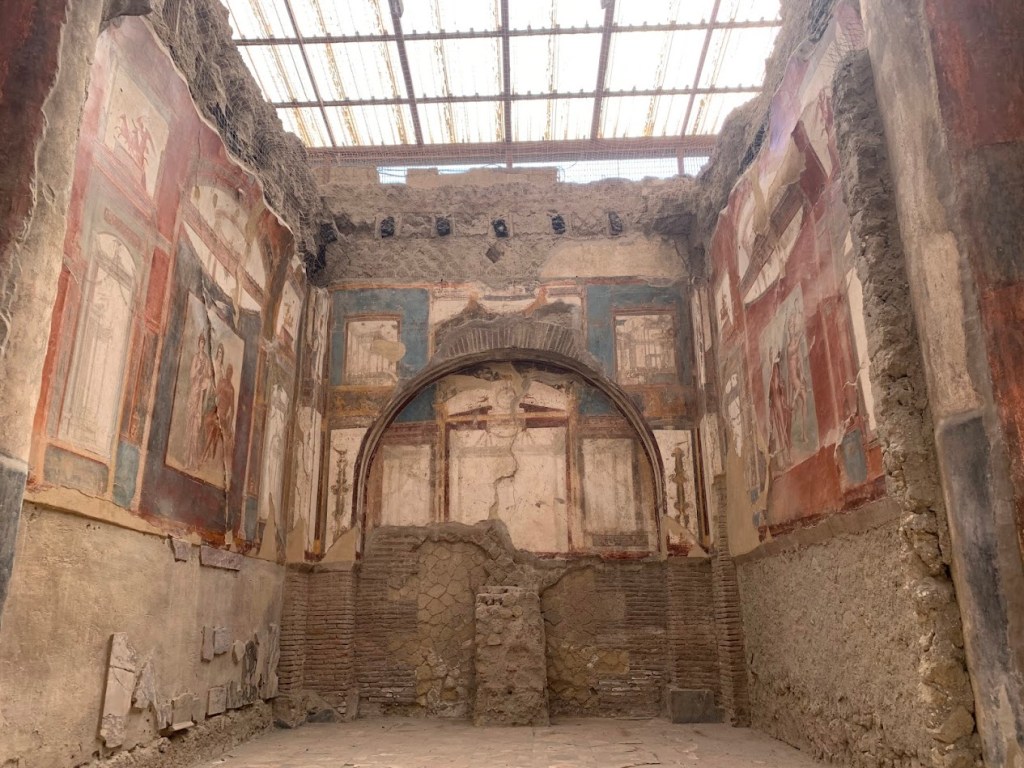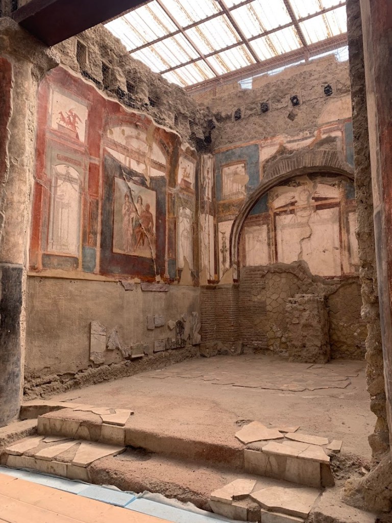 The Sacellum of the Augustales in Herculaneum was one of the most fascinating stops on my visit. Dedicated to the imperial cult of the Augustales, this small but significant temple offered a unique glimpse into the religious practices and political loyalties of the town’s inhabitants.