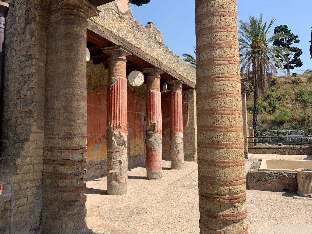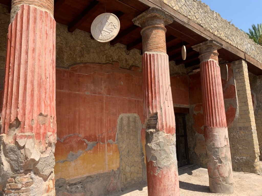Walking through this house and viewing its very colorful walls and columns, I was able to imagine the lives of its wealthy inhabitants, appreciating the blend of art and daily life that characterized Herculaneum.
