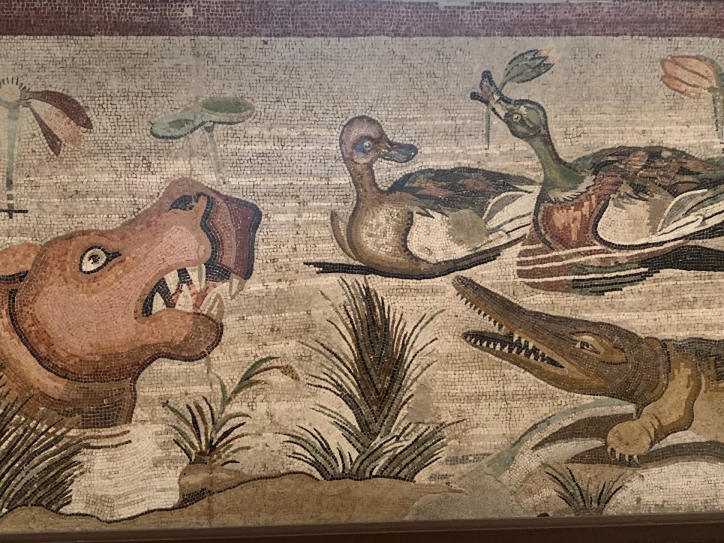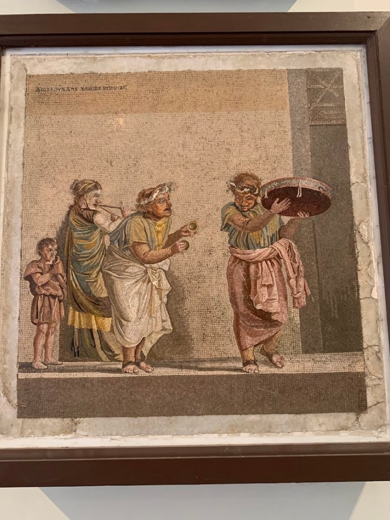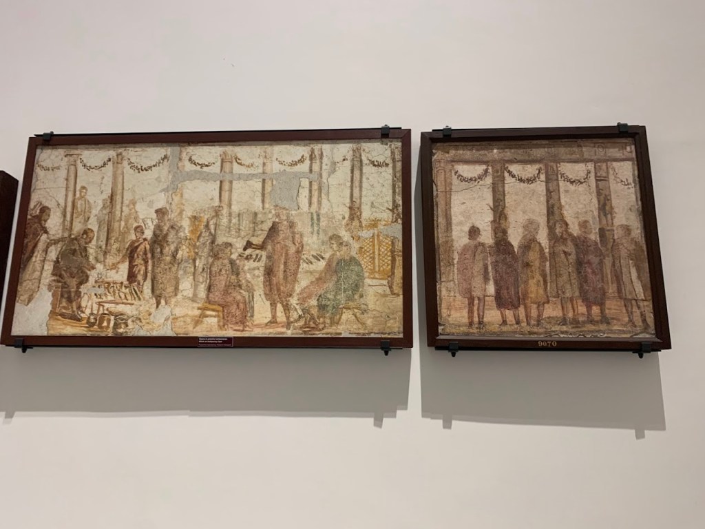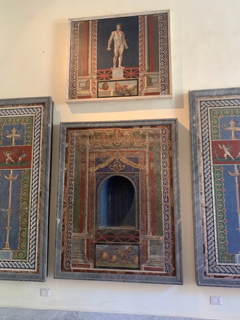 Seeing the frescoes in person was a profound moment for me, especially after visiting Pompeii. While the ruins of Pompeii provided a context and setting for these artworks, the museum allowed for a closer and more detailed examination. I had fun looking at the mosaics, which ranged from intricate designs to comical animals.