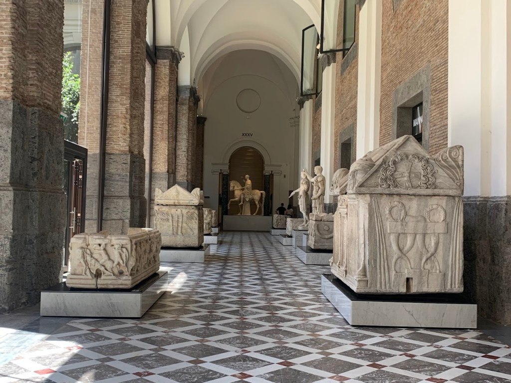 Traveling to the Museum of Naples from Pompeii was a somewhat seamless journey, filled with anticipation and nervousness. Having recently explored Pompeii, my expectations were high, eager to see the artifacts in a new context and learn more about their significance. I was a bit nervous while navigating the train and metro systems of Naples, but I still made it to the museum in the late morning.