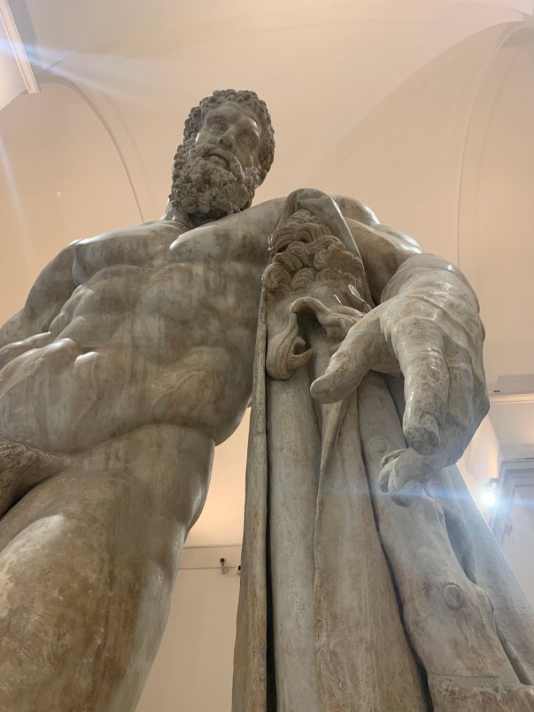 Some are colossal in size such as the Farnese Hercules and the powerful Farnese Bull which are both striking.