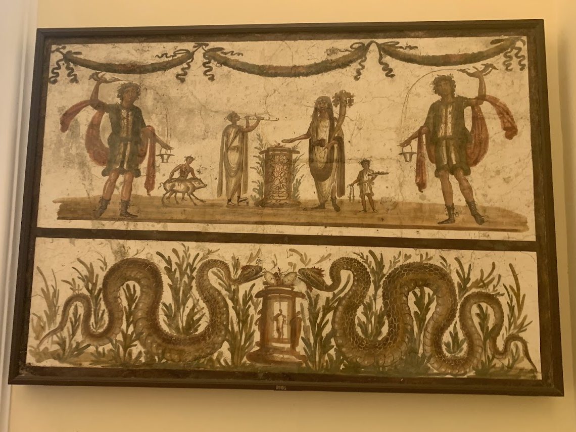 Frescoes depicting the Lares, household gods, were fascinating. Especially as one fresco contains an early depiction of Mount Vesuvius.